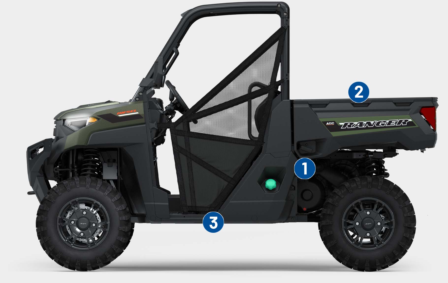 Get more done in a day with RANGER DIESEL. Its Kubota 3 cylinder engine delivers power and performance to help you get the job done.